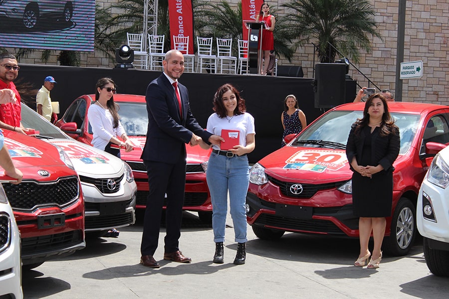Tegucigalpa, 7 de marzo de 2019. – Banco Atlántida, reafirma nuevamente su liderazgo en el sector bancario finalizando con gran éxito la promoción que ha transformado la vida de 30 ganadores a nivel nacional, en esta ocasión con la entrega de los últimos 10 carros a los afortunados tarjetahabientes que estarán estrenando un carro último modelo. Los ganadores mostraron su agradecimiento hacia Banco Atlántida destacando la confianza que mantienen en el Banco que siempre está con ellos, en donde pueden imaginar, creer y triunfar. Además se realizó la entrega de un Kia Rio como producto del sorteo especial del carro número 31 realizado para sus colaboradores, resultando como ganadora Sohany Aguilera quién agradeció ser parte de la institución bancaria más sólida del país. La Licda. Lucy Sauceda, Vicepresidente de Banca de Personas, detalló una nueva promoción “Tus Tarjetas de Crédito MasterCard de Banco Atlántida te llevan a la final de la UEFA Champions League” que brindará a los clientes la oportunidad de vivir la pasión del fútbol en la gran final de la UEFA Champions League Madrid 2019.
