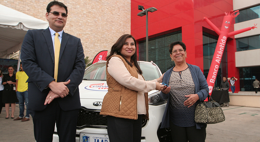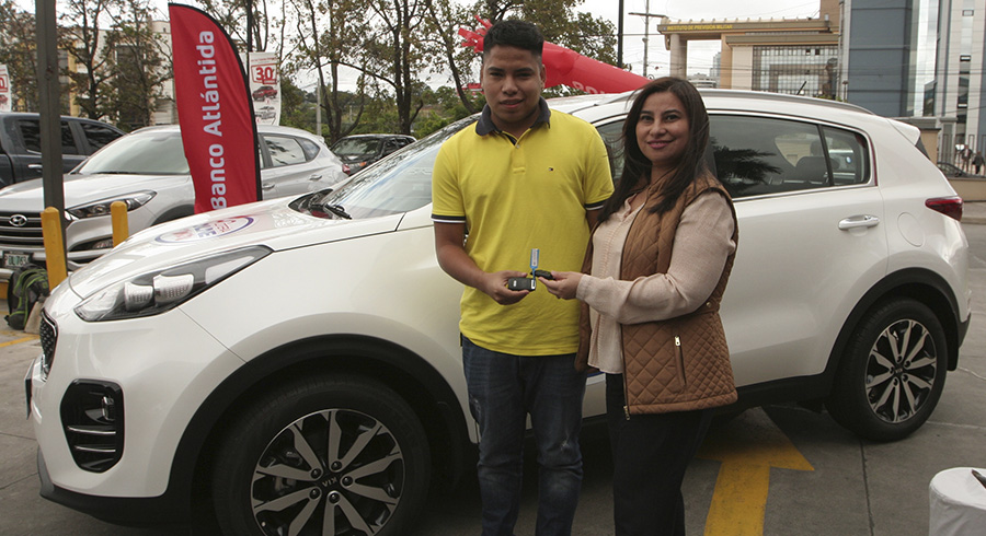 Tegucigalpa, miércoles 17 de enero 2018.- Tras la exitosa promoción “Lotería Online del Amor” que dio como resultado un importante aporte a la Teletón, Banco Atlántida realizó la entrega a los dos clientes que resultaron ganadores de un vehículo KIA SPORTAGE del año. Los felices ganadores son: OLIVIA AVILA URQUIA de San Pedro Sula y CRISTIAN LEONEL COELLO SIERRA, jóven universitario de Tegucigalpa. El Lic. Carlos Girón, Vicepresidente de Banca de Personas, Marketing y Comunicaciones compartió el entusiasmo de los clientes manifestando, “Banco Atlántida ha estado toda la vida con la Teletón y nos enorgullece tener clientes tan generosos que se unen a esta noble causa.” En un esfuerzo conjunto en donde una vez más se demostró la unión y solidaridad, Banco Atlántida como institución socialmente responsable, las empresas del Grupo Financiero Atlántida, clientes y colaboradores hicieron posible el gran donativo de L 5,500,900. ¡Toda la Vida al lado de la Teletón!